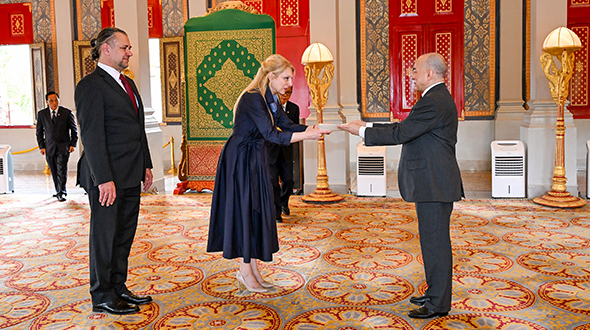 នៅវេលាព្រឹក ថ្ងៃទី ៦ ខែ វិច្ឆិកា ឆ្នាំ ២០២៥ ព្រះករុណាព្រះបាទសម្តេចព្រះបរមនាថ នរោត្តម សីហមុនី ព្រះមហាក្សត្រនៃព្រះរាជាណាចក្រកម្ពុជា ជាទីគោរពសក្ការ:ដ៏ខ្ពង់ខ្ពស់បំផុត សព្វព្រះរាជហឬទ័យប្រោសព្រះរាជទាន លោកជំទាវ Ivana Golubović-Duboka ឯកអគ្គរដ្ឋទូតវិសាមញ្ញ និងពេញសមត្ថភាពតែងតាំងថ្មី នៃសាធារណរដ្ឋស៊ែប៊ីប្រចាំព្រះរាជាណាចក្រកម្ពុជា អញ្ជើញចូលក្រាបបង្គំគាល់ថ្វាយសារតាំង នៅព្រះទីនាំងទេវាវិនិច្ឆ័យ។