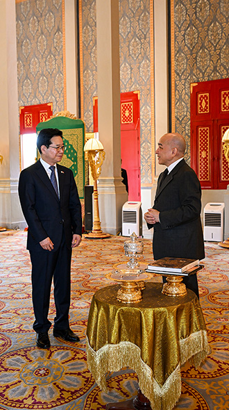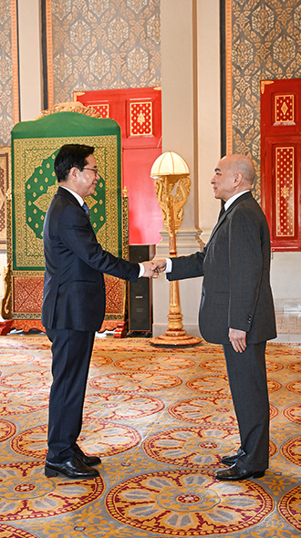 Le 30 décembre 2025, dans la Salle du Trône, S. Exc. Mr Kim Changyong, Ambassadeur Extraordinaire et Plénipotentiaire de la République de Corée au Royaume du Cambodge, a présenté ses Lettres de Créance à Sa Majesté le Roi NORODOM SIHAMONI.