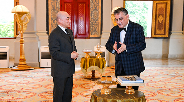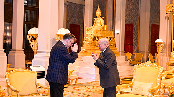 នៅវេលាព្រឹក ថ្ងៃទី ២០ ខែ សីហា ឆ្នាំ ២០២៥ ព្រះករុណាព្រះបាទសម្តេចព្រះបរមនាថ នរោត្តម សីហមុនី ព្រះមហាក្សត្រនៃព្រះរាជាណាចក្រកម្ពុជា ជាទីគោរពសក្ការ:ដ៏ខ្ពង់ខ្ពស់បំផុត សព្វព្រះរាជហឬទ័យប្រោសព្រះរាជទាន ឯកឧត្តម Olivier Richard ឯកអគ្គរដ្ឋទូតវិសាមញ្ញ និងពេញសមត្ថភាពតែងតាំងថ្មី នៃសាធារណរដ្ឋបារាំងប្រចាំព្រះរាជាណាចក្រកម្ពុជា អញ្ជើញចូលក្រាបបង្គំគាល់ថ្វាយសារតាំងនៅព្រះទីនាំងទេវាវិនិច្ឆ័យ ។