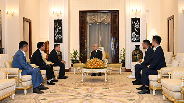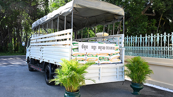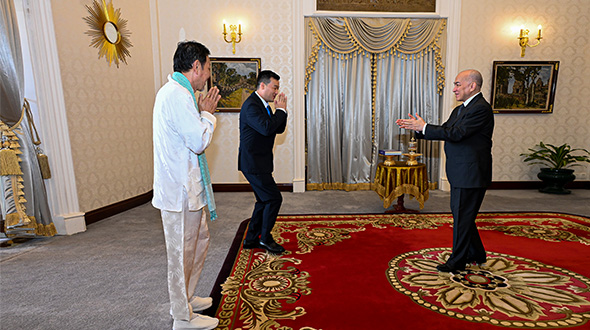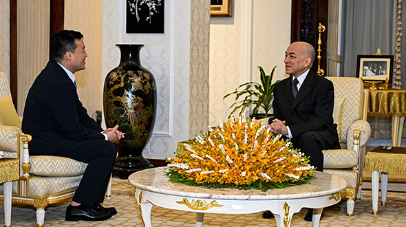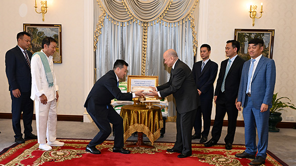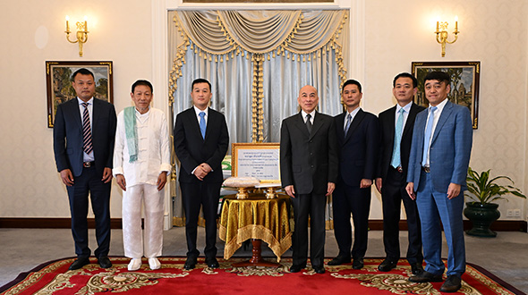 ព្រះករុណាព្រះបាទសម្តេចព្រះបរមនាថ នរោត្តម សីហមុនី ព្រះមហាក្សត្រនៃព្រះរាជាណាចក្រកម្ពុជា សព្វព្រះរាជឬហទ័យប្រោសព្រះរាជទានលោក ប៉ុង ហៃ ប្រធានសមាគមពាណិជ្ជកម្មសកលខ្មែរ-ចិន ព្រមទាំងគណៈប្រតិភូចូលក្រាបថ្វាយបង្គំគាល់ ថ្វាយតង្វាយនៅមហាប្រាសាទខេមរិន្ទ វេលាព្រឹក ថ្ងៃទី ២៣ ខែ ធ្នូ ឆ្នាំ ២០២៥ ។ គណៈប្រតិភូ បាននាំយកតង្វាយជាអង្ករ ៣០តោន និងថវិការចំនួន ២០.០០០ ដុល្លារអាមេរិក ថ្វាយព្រះករុណាជាអម្ចាស់ជីវិតតម្កល់លើត្បូង ជាទីគោរពសក្ការ:ដ៏ខ្ពង់ខ្ពស់បំផុត ដើម្បីព្រះអង្គប្រោសព្រះរាជទានដល់ប្រជារាស្រ្តក្រីក្រជួបការលំបាក ។
