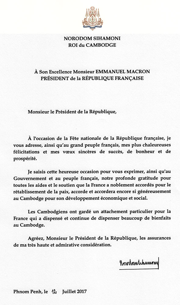 Letter to H.E. Mr. EMMANUEL MACRON, President of the French Republic .