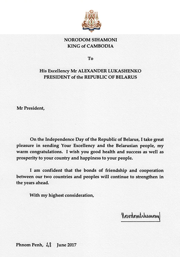 Letter to H.E. Mr. ALEXANDER LUKASHENKO, President of the Republic of BELARUS.