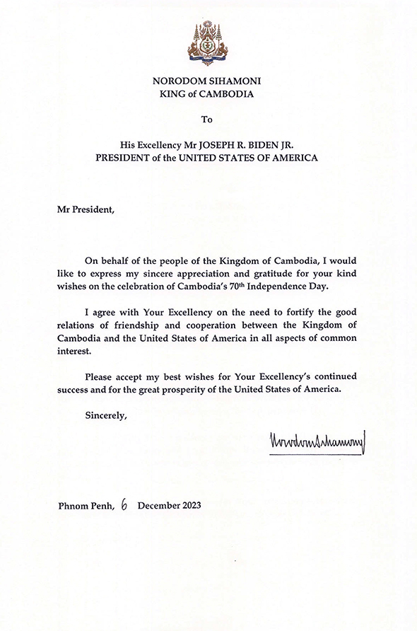 Letter to His Majesty KING MAHA VAJIRALONGKORN, PHRA VAJIRAKLAOCHAOYUHUA of THAILAND.