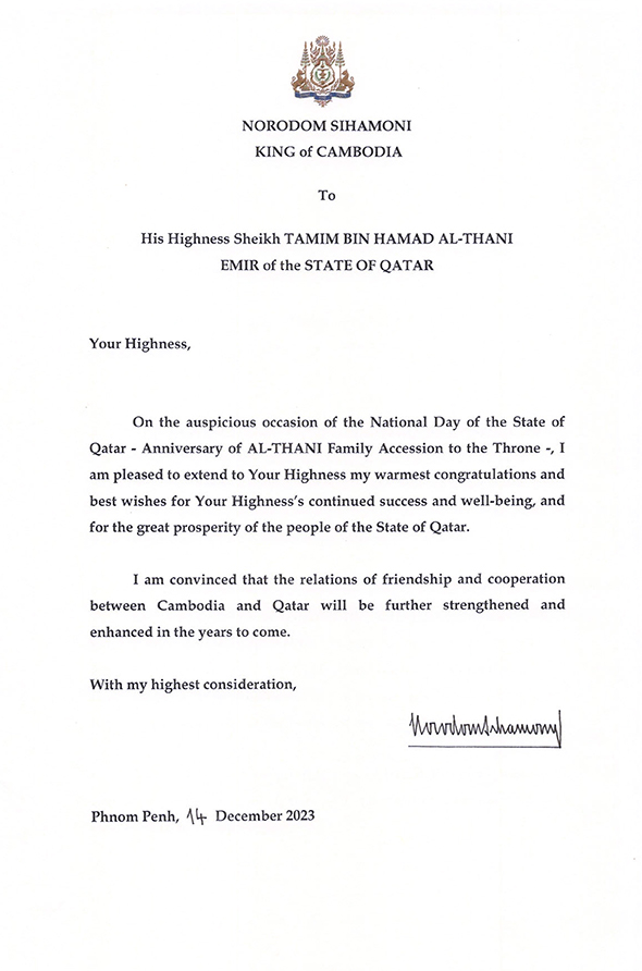 Letter to His Highness Sheikh TAMIM BIN HAMAD AL-THANI, EMIR of the STATE OF QATAR.