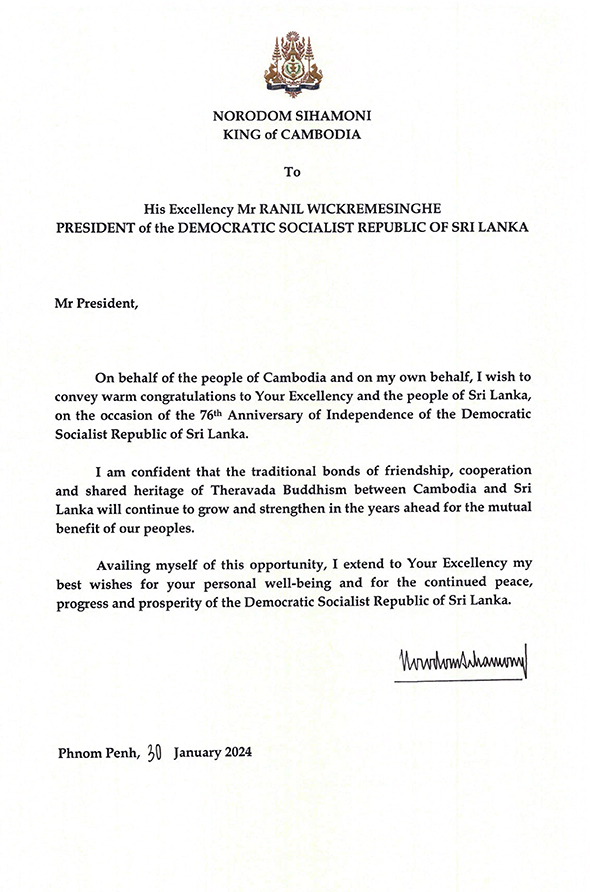 Letter to His Excellency Mr RANIL WICKREMESINGHE, PRESIDENT of the DEMOCRATIC SOCIALIST REPUBLIC OF SRI LANKA.