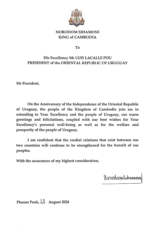 Letter to His Excellency Mr LUIS LACALLE POU, PRESIDENT of the ORIENTAL REPUBLIC OF URUGUAY.