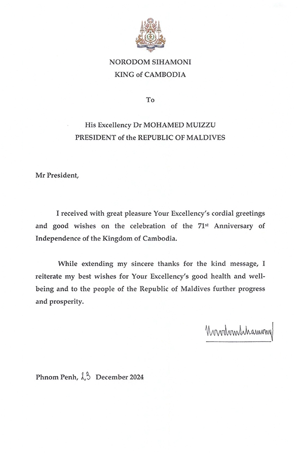 Letter to His Excellency Dr MOHAMED MUIZZU, PRESIDENT of the REPUBLIC OF MALDIVES.