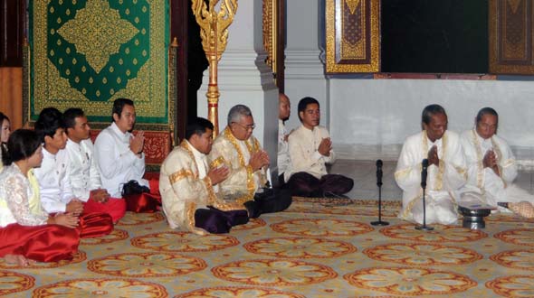 On November 17th 2013 midnight, at the Throne Hall, HM the King presided over the traditional “Ak Ambok Sampeah Preah Khe” Royal Ceremony. It consists in praying for the people’s prosperity in the Kingdom.