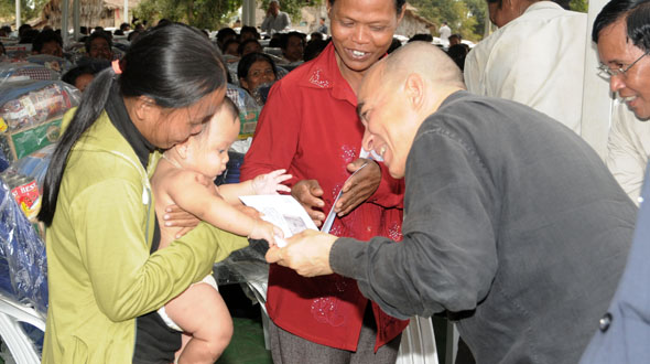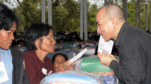 Immediately after the preceding, HM the king was warmly welcomed by 286 representatives of poor families from 5 villages of Taing Kroch commune, Damnak Changeu district, Kep province.