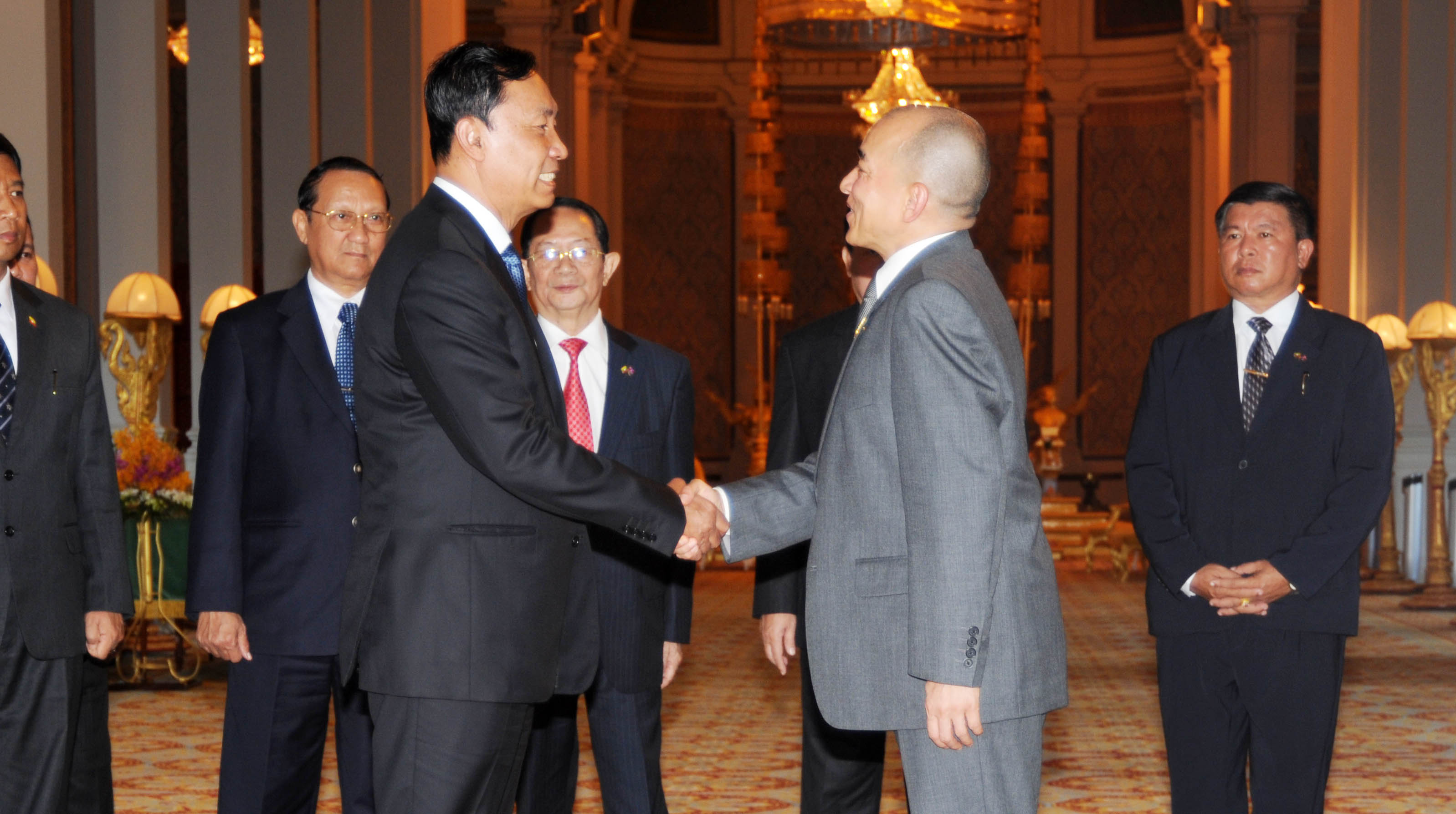 On Thursday afternoon, December 21st, 2013, His Majesty the King granted an Audience to H.E. Mr. U Shwe Mann, president of the Lower House of the Republic of the Union of Myanmarand his delegation, at Khemarin Palace.