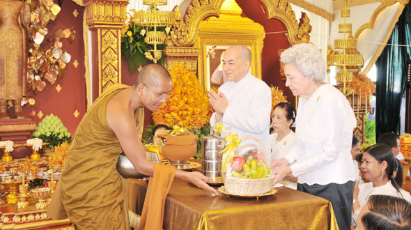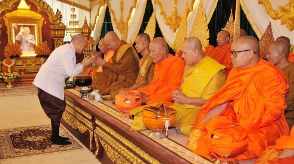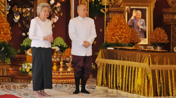 His Majesty King NORODOM SIHAMONI of Cambodia and Her Majesty the Queen-Mother NORODOM MONINEATH SIHANOUK presided over a Buddhist ceremony to commemorate the 7th anniversary of His Majesty King Father NORODOM SIHANOUK’s passing, on 15 October 2019, at the Silver Pagoda of the Royal Palace.