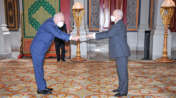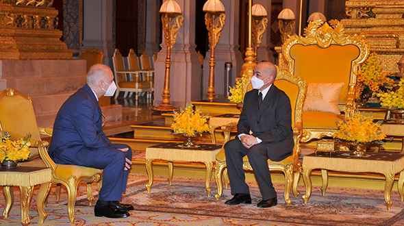His Majesty King NORODOM SIHAMONI has received the Credentials of H.E. Mr Nikoloz Apkhazava, Ambassador Extraordinary and Plenipotentiary of Georgia to the Kingdom of Cambodia, on 6 May 2022.