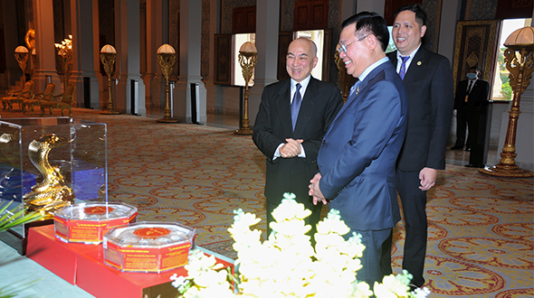 On 19 November 2022, at the Throne Hall, His Majesty King NORODOM SIHAMONI greeted H.E. Mr Vuong Dinh Hue, Chairman of the National Assembly of the Socialist Republic of Vietnam.