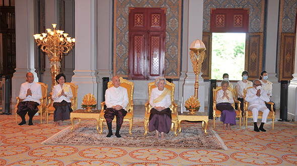 On 25 July 2023, at the Throne Hall, His Majesty King NORODOM SIHAMONI and Her Majesty Queen Mother NORODOM MONINEATH SIHANOUK presided over the ritual of “Vossa” Candle Moulding.