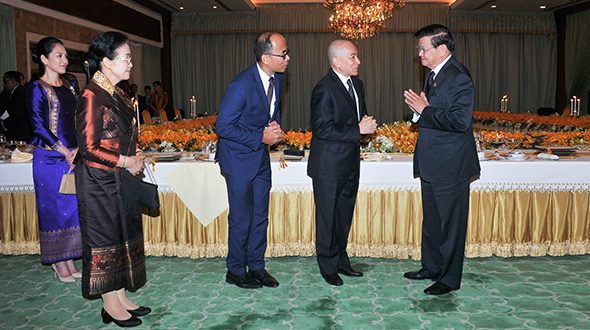 On the evening of 23 April 2024, His Majesty King NORODOM SIHAMONI hosted a State Banquet in honour of H.E. Dr THONGLOUN SISOULITH, President of the Lao People’s Democratic Republic, at the Serey Mongkol Pavilion of the Royal Palace.