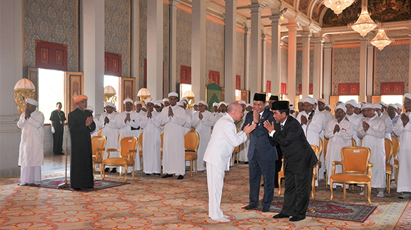 On the occasion of the 71st Birthday Anniversary of His Majesty King NORODOM SIHAMONI of Cambodia, Oknha Sos Komri, President of the Committee of Leaders of Islam in Cambodia and the delegation of Provincial and District Imams, Hakim and Tuon presented their good wishes to His Majesty the King, at the Throne Hall of the Royal Palace, on the morning of 18 May 2024.