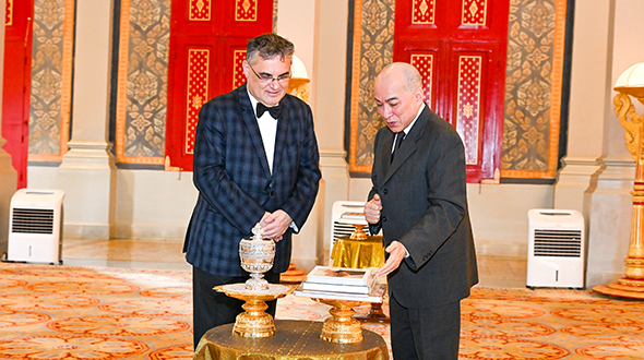 Royal Palace, Throne Hall: on 20 August 2025, His Majesty King NORODOM SIHAMONI has received the Credentials of H.E. Mr Olivier Richard, Ambassador Extraordinary and Plenipotentiary of the French Republic to the Kingdom of Cambodia.