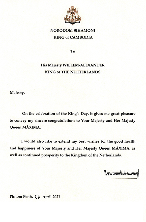 Lettre à Sa Majesté WILLEM-ALEXANDER, ROI des PAYS-BAS.