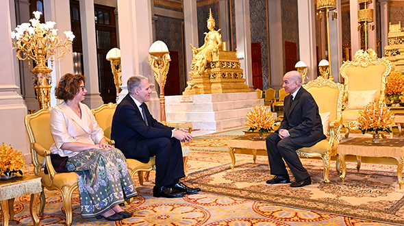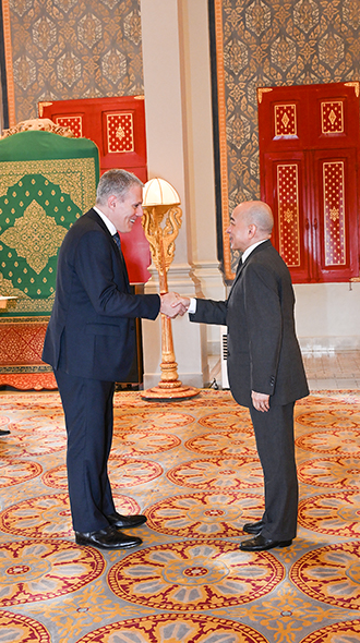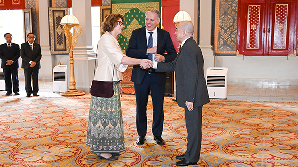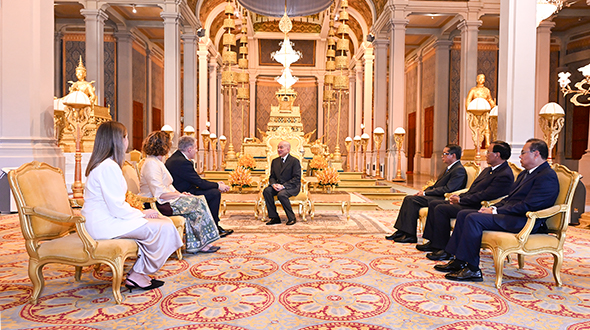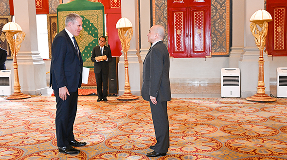 Sa Majesté NORODOM SIHAMONI, Roi du Cambodge a reçu les Lettres de Créance de S. Exc. M. Christian Angelo Desroches, Ambassadeur Extraordinaire et Plénipotentiaire du Canada au Royaume du Cambodge, le 24 octobre 2025, dans la Salle du Trône du Palais Royal.