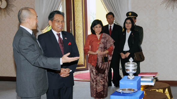 A 11h00 du vendredi 20 déembre 2013, au Palais Khemarin, Sa Majesté le Roi a bien voulu accorder une audience à SE M Soehardjono sastromihardjo, Ambassadeur Extraordinaire et Plénipotentiaire de la République d’Indonésie, à la fin de sa mission au Royaume du Cambodge.