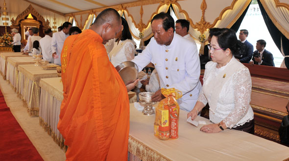 Sa Majesté le Roi NORODOM SIHAMONI et Sa Majesté la Reine-Mère NORODOM MONINEATH SIHANOUK du Cambodge ont présidé la cérémonie religieuse pour commémorer le 6ème Anniversaire de la disparition de Sa Majesté le Roi-Père NORODOM SIHANOUK du Cambodge, le 15 octobre 2018, à la Pagode d’Argent du Palais Royal.