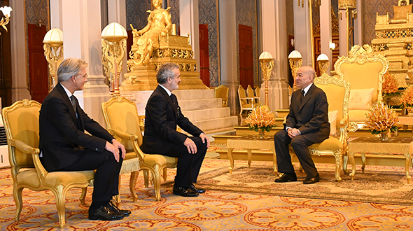 Palais Royal, Salle du Trône : le 10 décembre 2024, Sa Majesté NORODOM SIHAMONI, Roi du Cambodge a reçu les Lettres de Créance de S. Exc. M. Stefano Podini, Ambassadeur Extraordinaire et Plénipotentiaire de l’Ordre Souverain Militaire de Malte au Royaume du Cambodge.