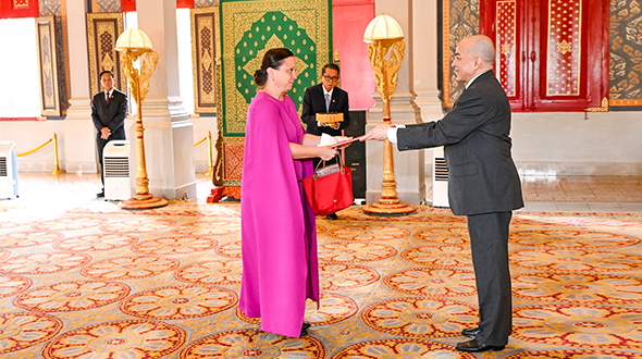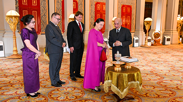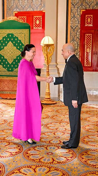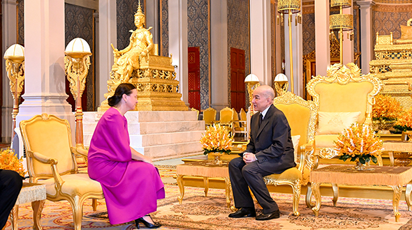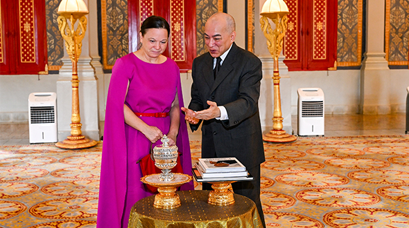 Sa Majesté NORODOM SIHAMONI, Roi du Cambodge a reçu les Lettres de Créance de S. Exc. Mme Markéta Kolc Hájková, Ambassadrice Extraordinaire et Plénipotentiaire de la République Tchèque au Royaume du Cambodge, le 3 novembre 2025, dans la Salle du Trône.