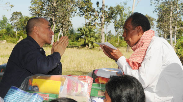 ព្រះអង្គសព្វព្រះរាជហ ឬទ័យសេ្តចយាងសំណេះសំណាលសាកសួរសុខទុក្ខ និងប្រោសព្រះរាជទានព្រះអំណោយដល់ប្រជា រាស្រ្តទីទ័លក្រ នៅកន្លែងប្រមូលផ្តុំតំណាងគ្រួសារចំនួន ៥៨០ មកពី ឃុំ ត្រល់ ស្រុករមាសហែក ខេត្តកណ្តាល ។