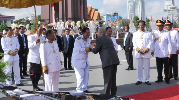 សំរិន ប្រធានរដ្ឋសភា នៃព្រះរាជាណាចក្រកម្ពុជា សម្តេចអគ្គមហាសេនាបតីតេជោ ហ៊ុន សែន នាយករដ្ឋមន្ត្រី នៃព្រះរាជាណាចក្រកម្ពុជា សម្តេចក្រឡាហោម ស ខេង ឧបនាយករដ្ឋមន្ត្រី រដ្ឋមន្ត្រី ក្រសួងមហាផ្ទៃ ឯកឧត្តម ទៀ បាញ់ ឧបនាយករដ្ឋមន្ត្រី
