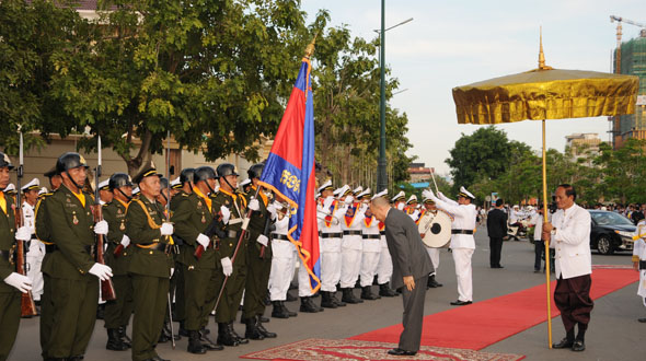 ជាទីគោរពសក្ការ:ដ៏ខ្ពង់ខ្ពស់បំផុត ព្រះអង្គសព្វព្រះរាជហឬទ័យ យាងជាព្រះរាជាធិបតីភាពដ៏ខ្ពង់ខ្ពស់បំផុតក្នុងពិធីបិទនៃទិវាបុណ្យជាតិដ៏មហោឡារិកនេះនៅវិមានឯករាជ្យ។