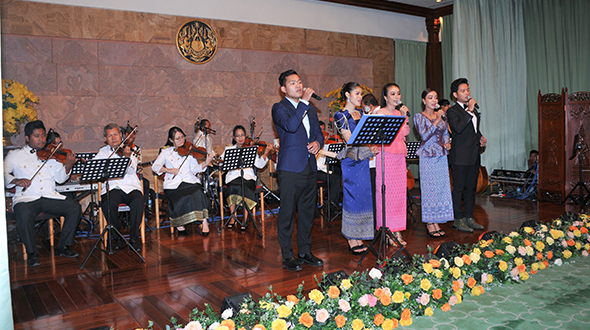 ព្រះមហាក្សត្រ នៃព្រះរាជាណាចក្រកម្ពុជា ជាទីគោរពសក្ការ:ដ៏ខ្ពង់ខ្ពស់បំផុត សព្វព្រះរាជហឬទ័យ រៀបចំនូវព្រះរាជពិធីលៀងសាយភោជន៍ដ៏ត្រចះត្រចង់ នៅក្នុងព្រះរាជតំណាក់សិរីមង្គល