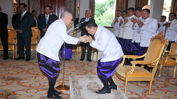 ជាទីគោរពសក្ការ:ដ៏ខ្ពង់ខ្ពស់បំផុត សព្វព្រះរាជហឬទ័យ ប្រោសព្រះរាជទានសមាជិក-សមាជិកានៃរាជរដ្ឋាភិបាល អាណត្តិទី៧ ដែលដឹកនាំដោយ ឯកឧត្តមកិត្តិទេសាភិបាលបណ្ឌិត ហ៊ុន ម៉ាណែត ចូលសច្ចាប្រណិធាន នៅព្រះទីនាំងទេវាវិនិច្ឆ័យ ។
