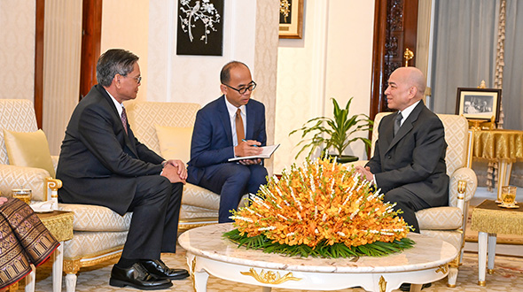 នៅវេលាព្រឹកថ្ងៃទី ៩ ខែ មករា ឆ្នាំ ២០២៦ ព្រះករុណាព្រះបាទសម្តេចព្រះបរមនាថ នរោត្តម សីហមុនី ព្រះមហាក្សត្រនៃព្រះរាជាណាចក្រកម្ពុជា ជាទីគោរពសក្ការ:ដ៏ខ្ពង់ខ្ពស់បំផុត សព្វព្រះរាជហឬទ័យប្រោសព្រះរាជទាន ឯកឧត្តម Buakeo Phumvongsay ឯកអគ្គរដ្ឋទូតវិសាមញ្ញ និងពេញសមត្ថភាពតែងតាំងថ្មី នៃសាធារណរដ្ឋប្រជាធិបតេយ្យប្រជាមានិតឡាវ ប្រចាំព្រះរាជាណាចក្រកម្ពុជា ចូលថ្វាយបង្គំគាល់ដើម្បីថ្វាយបង្គំលាក្នុងឱកាសដែលឯកឧត្តម បានបញ្ចប់បេសកកម្មការទូតប្រកបដោយជោគជ័យ នៅព្រះរាជាណាចក្រកម្ពុជា នៅមហាប្រាសាទខេមរិន្ទ ។