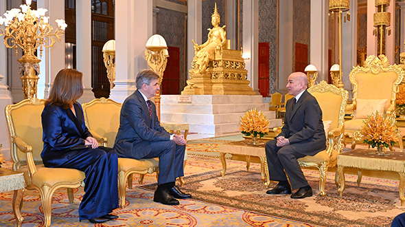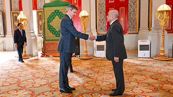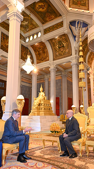 នៅវេលាព្រឹកថ្ងៃទី ១២ ខែ មករា ឆ្នាំ ២០២៦ ព្រះករុណាព្រះបាទសម្តេចព្រះបរមនាថ នរោត្តម សីហមុនី ព្រះមហាក្សត្រនៃព្រះរាជាណាចក្រកម្ពុជា ជាទីគោរពសក្ការ:ដ៏ខ្ពង់ខ្ពស់បំផុត សព្វព្រះរាជហឬទ័យប្រោសព្រះរាជទានឯកឧត្តម Darius Gaidys ឯកអគ្គរដ្ឋទូតវិសាមញ្ញ និងពេញសមត្ថភាពតែងតាំងថ្មី នៃសាធារណរដ្ឋលីទុយអានីប្រចាំព្រះរាជាណាចក្រកម្ពុជា អញ្ជើញចូលក្រាបបង្គំគាល់ថ្វាយសារតាំង នៅព្រះទីនាំងទេវាវិនិច្ឆ័យ។