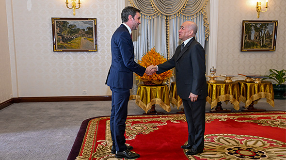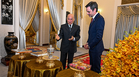 ព្រះករុណាព្រះបាទសម្តេចព្រះបរមនាថ នរោត្តម សីហមុនី ព្រះមហាក្សត្រនៃព្រះរាជាណាចក្រកម្ពុជា ជាទីគោរពសក្ការ:ដ៏ខ្ពង់ខ្ពស់បំផុត សព្វព្រះរាជហឬទ័យប្រោសព្រះរាជទាន ឯកឧត្តម Flavio Bonetti តំណាងអង្គការយូណេស្កូប្រចាំព្រះរាជាណាចក្រកម្ពុជា ចូលក្រាបថ្វាយបង្គំគាល់នៅមហាប្រាសាទខេមរិន្ទ នៅវេលាព្រឹក ថ្ងៃទី ២៧ ខែ មករា ឆ្នាំ ២០២៦។
